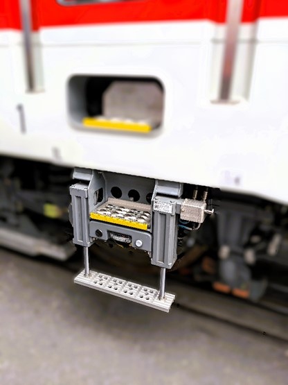 #Das System ermöglicht einen direkten Zustieg aus dem Gleisbett in das Führerhaus der Lokomotive (Baureihe 105). Ein pneumatisch ausfahrbarer Tritt erfüllt die Anforderungen nach DIN 5566 und DGUV Vorschrift 70 und ist als sicherheitsrelevante Komponente in die Fahrzeugleittechnik integriert.