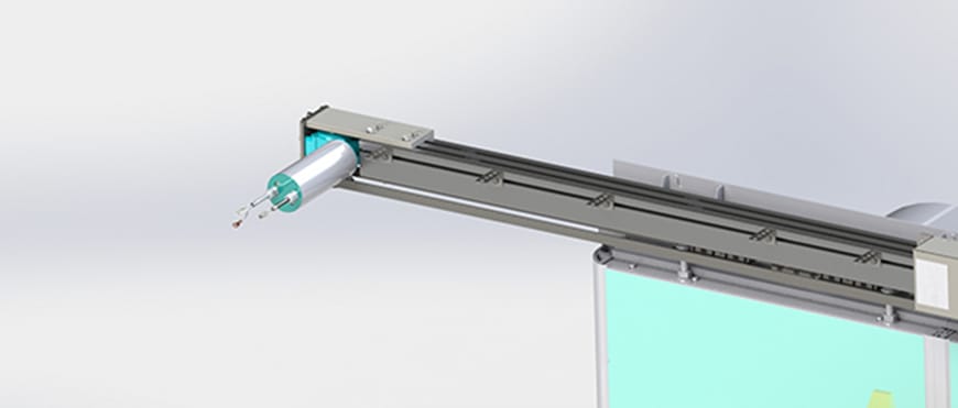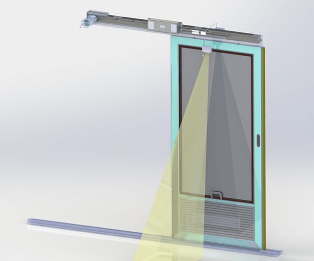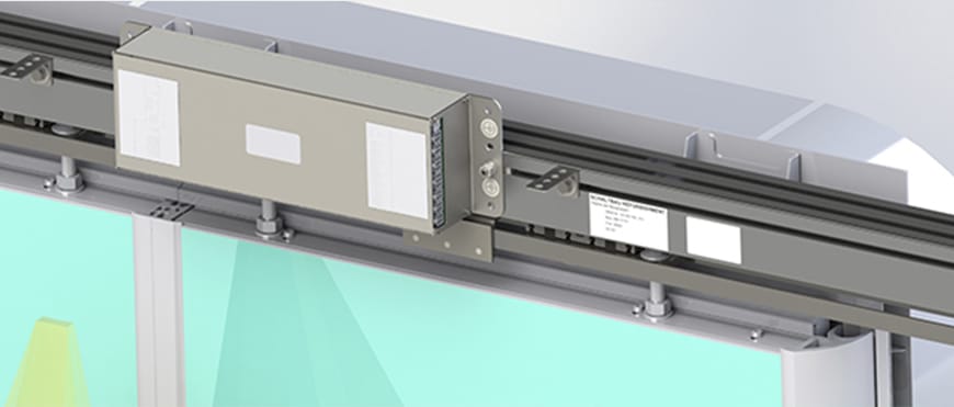 Innentür mit elektromotorisch angetriebenem Türantrieb. Der Türantrieb ist modular aufgebaut und kann durch ein flexibles Baukastensystem individuell an die Kundenforderung designed werden. Der Antrieb besteht aus einem speziellen Au-Profil welches in der Länge ohne Konstruktionsänderungen angepasst werden kann. Die Bauweise garantiert ein geringes Gewicht bei gleichzeitiger hoher Tragkraft für die Türblätter. Die Türblätter können entsprechend der Kundenforderung als Brandschutztür, Vollglastür oder in Sandwichbauweise aufgebaut werden.